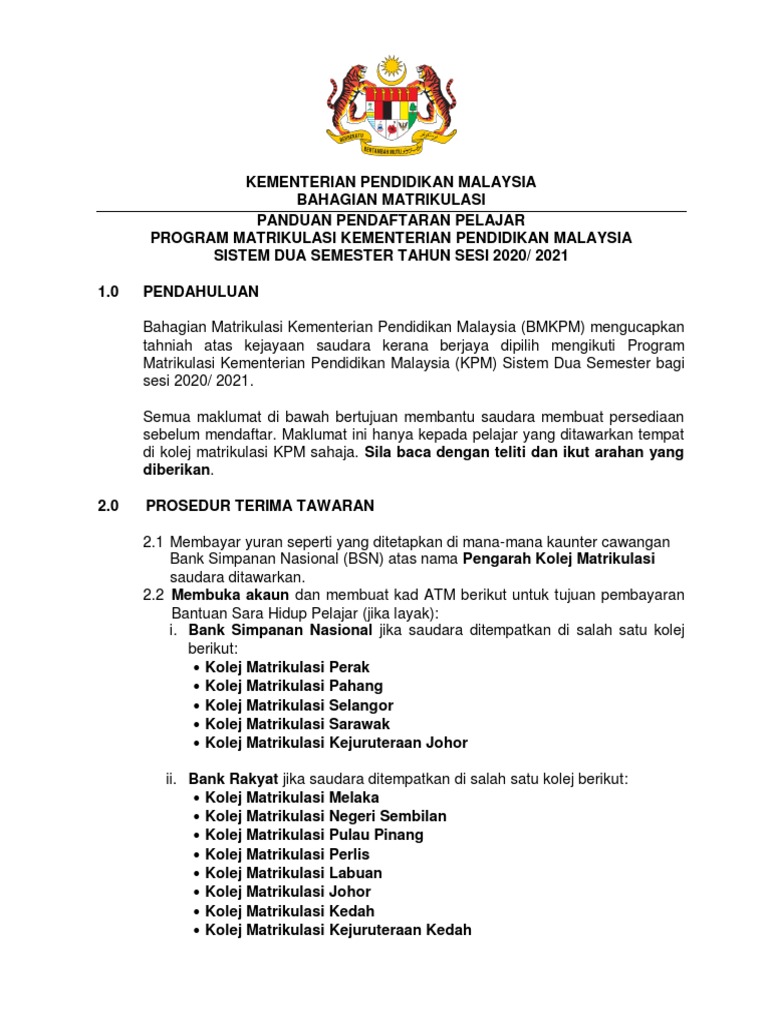 Panduan Umum Pendaftaran Online Kolej Matrikulasi Pahang Facebook
